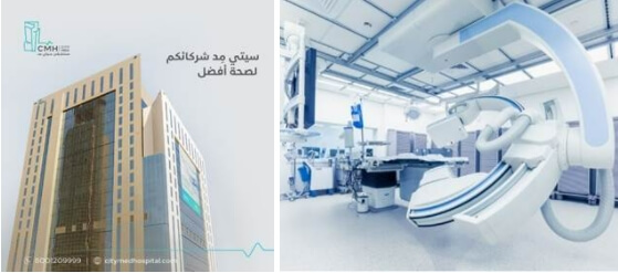 2021년에 개원한 CityMed Hospital은 리야드 시내 북쪽에 위치해 있는 사립병원으로 내외과를 비롯해 소아과 및 산부인과, 심장병 전문센터 및 재활의학과, 피부과 및 성형외과 등 각 전문 진료과가 있는 3차 종합병원입니다. 지하 5층부터 지상 16층으로 구성된 단독 건물이며, 11층부터 16층은 입원실이 있습니다. 저희 병원은 VIP 대상 전문 병원을 지향하고 있어 병동 시설은 5성급 호텔 수준에 맞먹습니다. 또한 가장 높은 16층은 펜트하우스 병실(The Royal Suite)로 VVIP 환자 단 한 분만을 위한 병실로 꾸며져 있습니다. 병실은 모두 1인실로 구성돼 있으며 180여 병상 규모입니다.