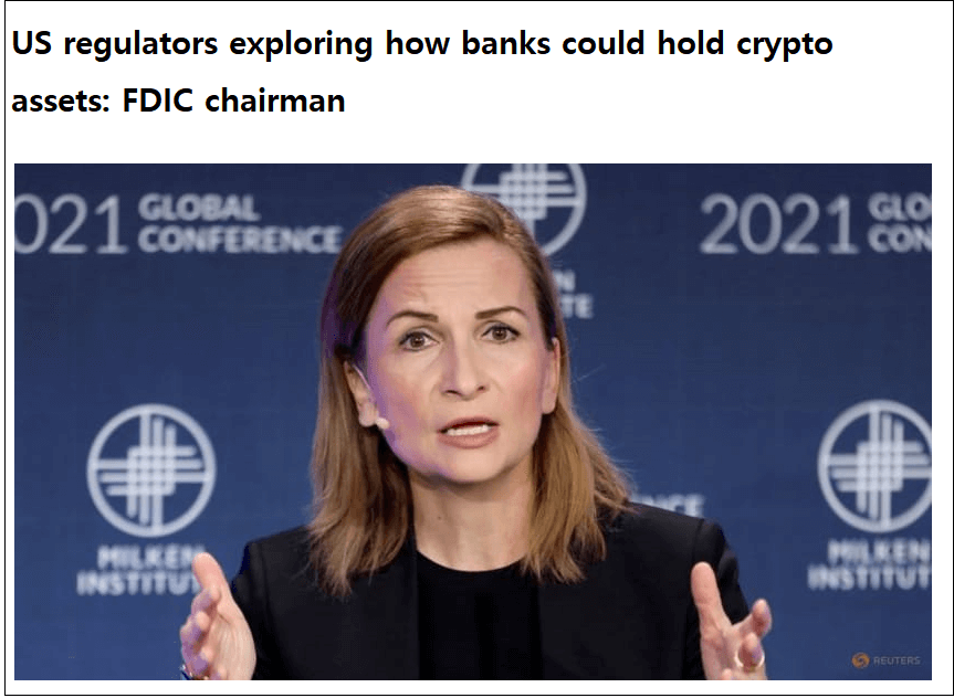 맥윌리엄스 FDIC 의장은 인터뷰에서 "나의 목표는 은행들이 암호자산을 보관해주는 수탁자 역할을 하면서 담보물로도 활용할 수 있는 길을 열어주는 것"이라고 밝혔다. 이는 향후 시중은행에서 암호화폐 예금과 담보대출 상품을 직접 제공할 수 있음을 암묵적으로 시사한 것이라 볼 수 있다.