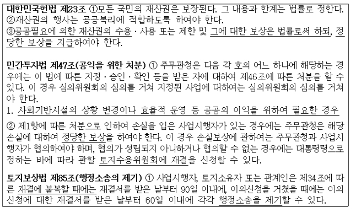 민간투자법 제47조 등 헌법과 법률에 규정된 정당한 절차에 따라 추진