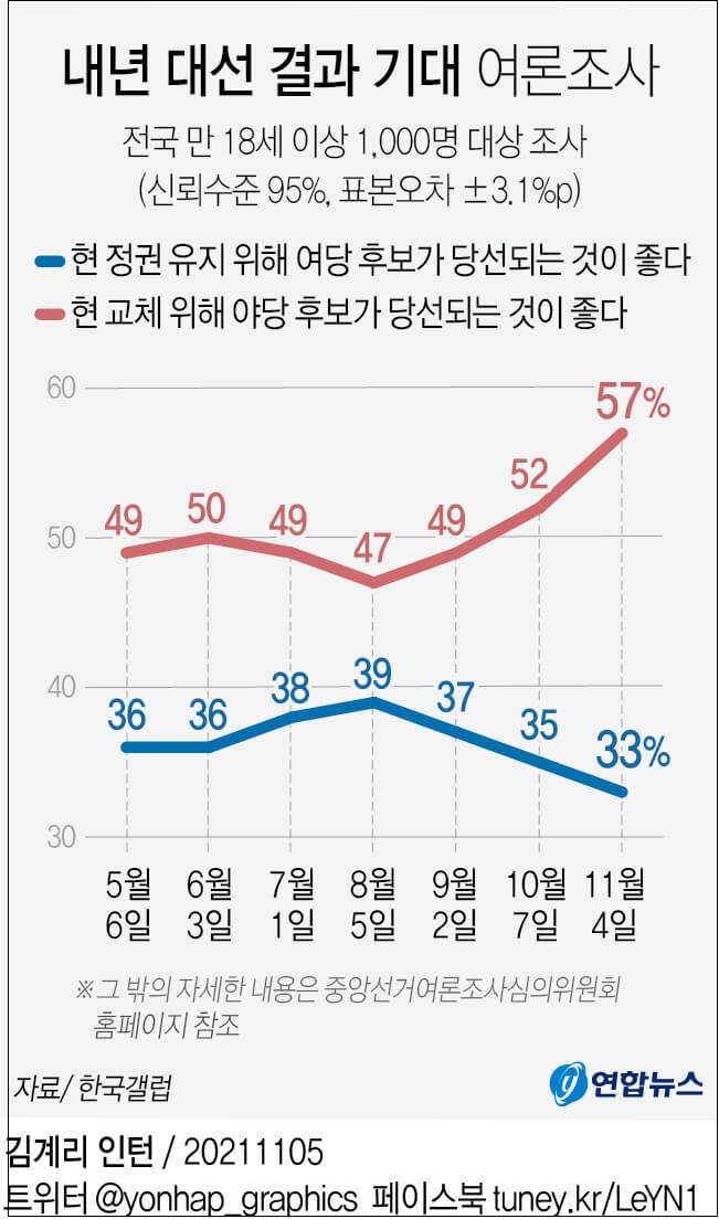 아래 여론조사가 맞다면 내년엔 수단방법 안가리고