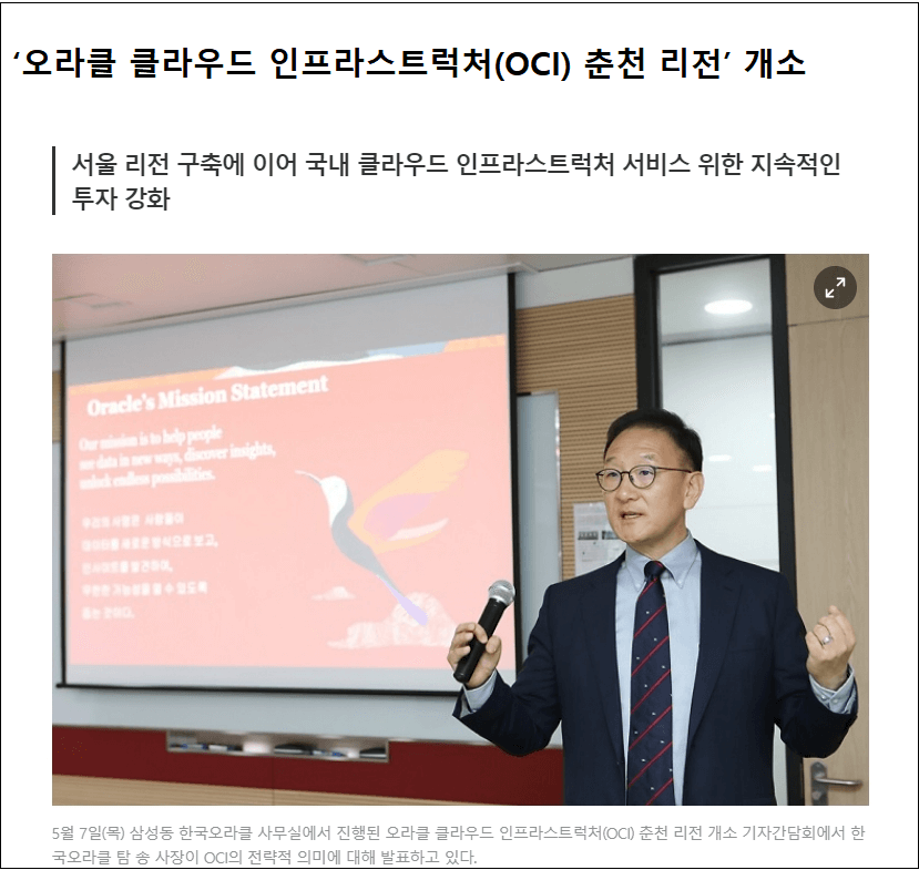광양에 오라클 클라우드 데이터센터 유치 [전남도]