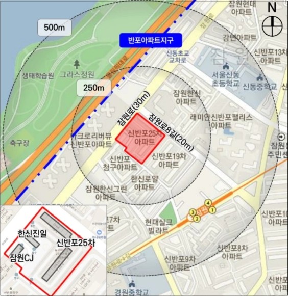 서울시는 지난 3일 제15차 도시계획위원회를 열고 서초구 잠원동 61-1번지 일대 신반포25차아파트 재건축 정비계획 변경 및 정비구역 변경안을 수정 가결했다고 4일 밝혔다.