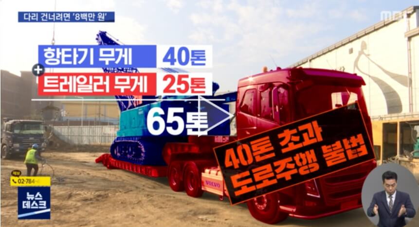 우리나라에서는 이 중장비들을 건설 현장까지 옮기는 게 전부 불법입니다.
