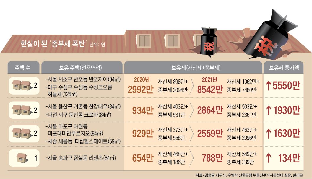 현실로 다가온 '종부세 폭탄'... 1주택자도 보유세 급증 "잠실 아파트 月 60만원 월세 내는 꼴"