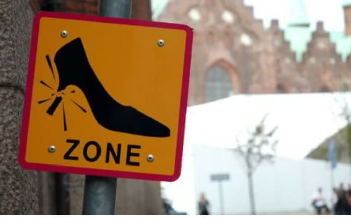 자갈이 깔린 이 덴마크 거리에 접근할 때, 굽이 높은 여성들은 다래끼가 깨지는 지형에 대해 적절하게 경고를 받는다. Flickr를 통한 에스프레소 마르코 사진 제공