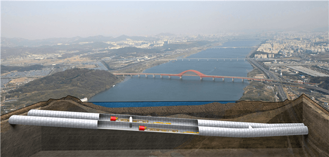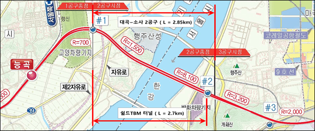 공사내용 : 쉴드TBM 공법으로 한강 하저(약 1.3km), 자유로 및 제2자유로를 통과하는 터널공사
