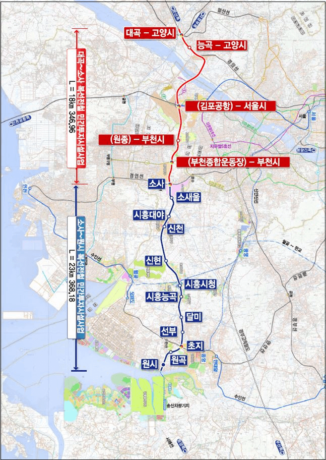 한편, 대곡~소사 복선전철은 서해선과 경의선을 연계하는 민간투자시설사업으로 총투자비 1조 5,767억 원을 투입하여 대곡∼소사 간 18.3km 철도를 건설중에 있으며, 사업기간은 2023년 1월 까지다.