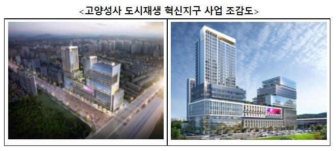 고양성사 혁신지구사업은 총 사업비 2,813억 원, 연면적 99,836㎡규모의 공공주도 도시재생리츠 사업*으로 ‘24년 하반기 준공될 예정이다.
