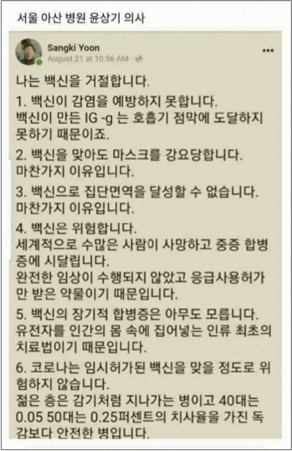 아래 의사가 언급한대로 코로나19는 감기 같은 것입니다