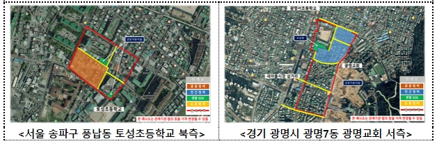 | (서울 송파구) 저층 공동주택이 혼재된 도시재생활성화지역이나, 개발이 제한됨에 따라 낙후된 주택과 협소한 도로, 부족한 주차시설 등 기반시설 정비 시급 ⇒ 공공참여형 가로주택정비를 중심으로 기부채납을 통한 도로 확폭과 인근 나대지를 활용한 공영주차장 설치 등을 통해 주거환경 개선 추진 (경기 광명시) 대상지역 북동측에 재개발 주택단지가 조성중이며, 재정비촉진지구 내 존치지역으로서, 차량 교행이 불가능한 도로와 통학로 등 정비 필요 ⇒ 관리지역 지정을 통한 민간 가로주택정비의 사업면적 확대(1만→2만m2 이하), 도로 확장 및 초등학교 인근 보행자 통로 조성, 대중교통 연계 가능 ![]() |