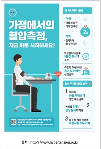 병원 혈압계보다 가정혈압계로 지속적으로 아래와 같은 측정법에 의해