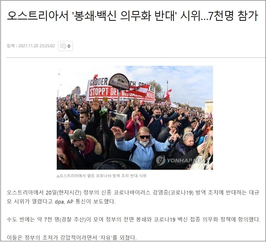 세계 도처에서 거세지는 봉쇄·백신 의무화 반대' 시위 Thousands flock to anti-mandate protests