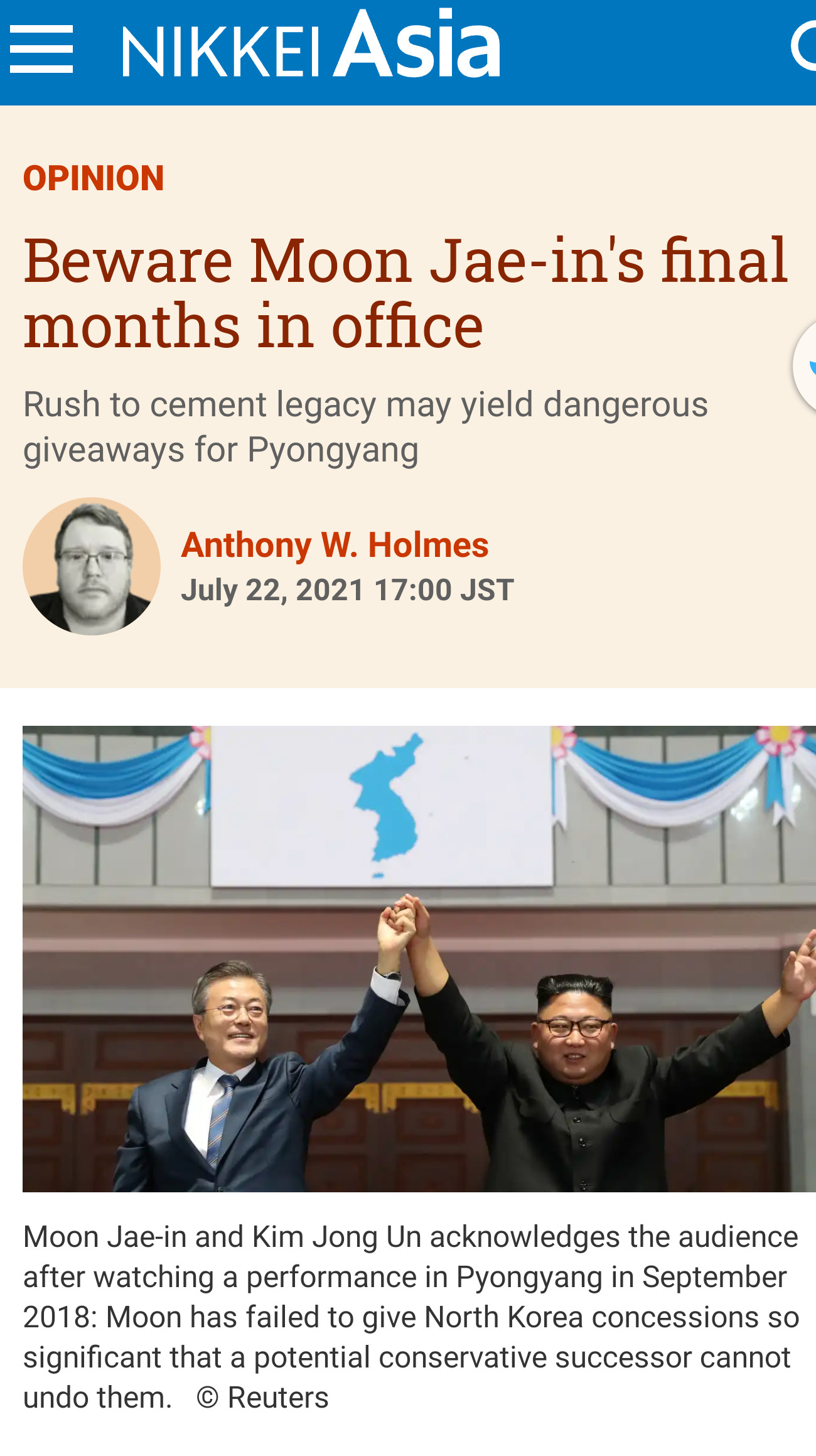 한국의 우파와 좌파는 안보 상황을 서로 다른 시각으로 보고 있다. 필자가 15일 닛케이아시아에서 펴낸 '북한의 황금양보 헛수고'란 칼럼에서 썼듯 한국 좌파는 협상에 대한 선의의 표시는 북한에 거의 없다.