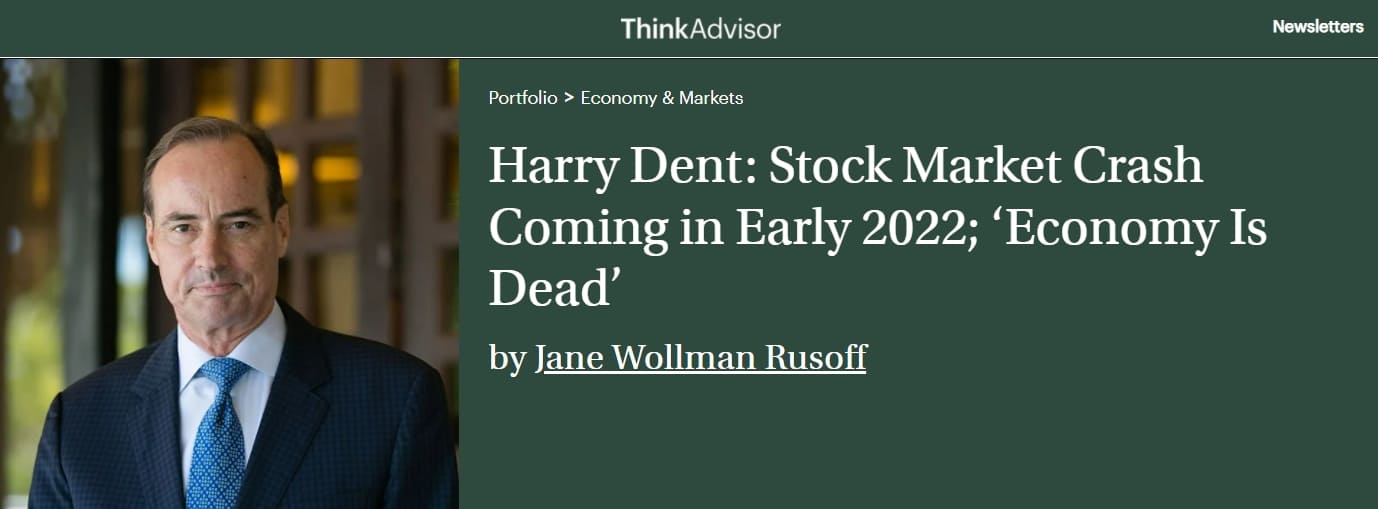 해리 덴트 주니어는 씽크어드바이저와의 인터뷰에서 "우리 생애 최대의 증시 폭락이 2022년에 닥칠 것"이라고 말했다.