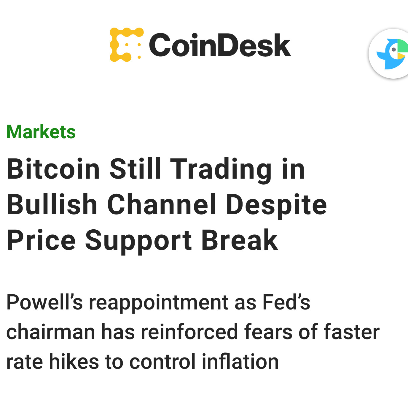 비트코인은 상승 추세 Bitcoin Still Trading in Bullish Channel Despite Price Support Break