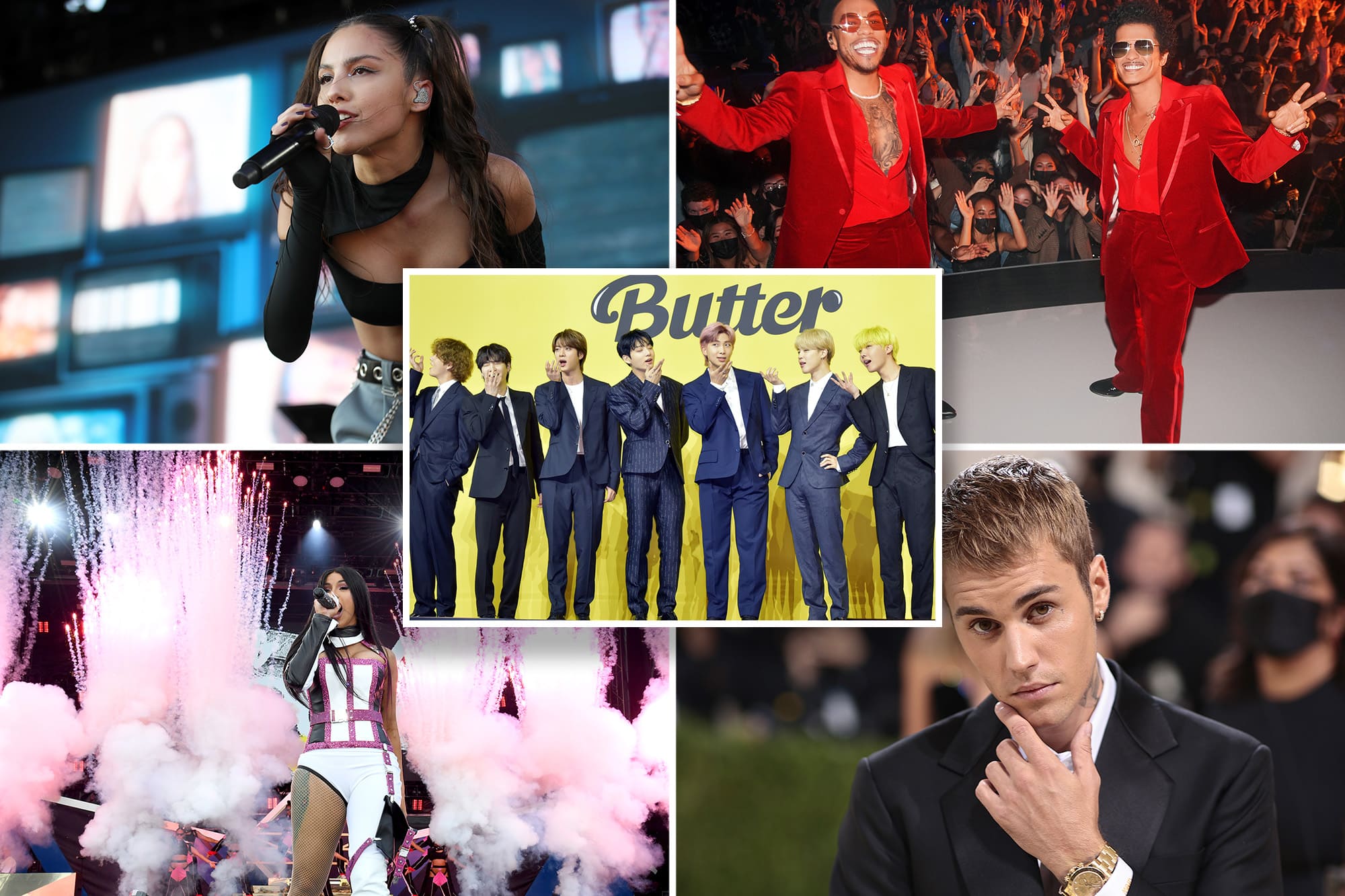 올리비아 로드리고, 실크 소닉, 카디 비버, 저스틴 비버, 그리고 방탄소년단은 2022년 64회 그래미 어워드를 위해 모든 음악을 작곡하는 최고의 음반 아티스트들 중 일부에 불과하다.