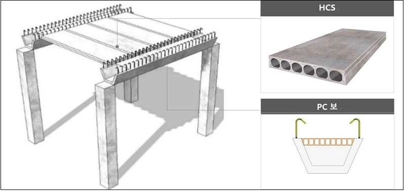 WBS공법은 와이드 경량 PC보와 중공 슬래브(Hollow Core Slab)로 구성되며 PC 중공 단면을 이용해 경량화는 물론 콘크리트 물량도 저감시킨 경제적인 공법이다. WBS공법은 응력이 우수하여 기둥 없이도 시공이 가능하고 내진 성능 또한 우수하다고 한화건설은 밝혔다.