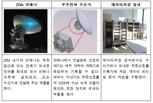 (VLBI 구성) 직경 22m 안테나, 우주전파 수신기 및 저장장치 등