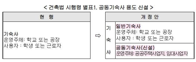「기숙사 건축기준」공유주거 활성화 위한 공동기숙사 용도 신설