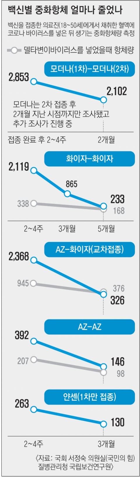 정부가 부스터샷을 권고하는 것은 델타 변이가 유행하면서 바이러스가 한층 강력해진 데다, 백신 접종 후 형성되는 중화항체량이 시간이 지나면서 급감하는 것을 확인했기 때문이다. 중화항체는 바이러스를 무력화하는 항체로, 이 수치가 낮으면 바이러스가 몸속에 들어왔을 때 감염 위험도 그만큼 커질 수 있다.