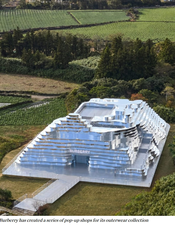 영국 패션 브랜드 버버리가 버버리가 최신 아우터 의류 컬렉션을 위해 한국 제주도 주변 산세를 반영한 팝업스토어를 설치했다.