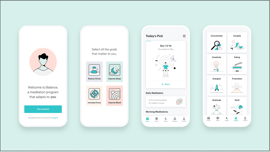 개인 맞춤형 명상을 제공하는 2021년 베스트 오브 2021 앱발란스 외에도 개인 개발형 수상자로는 음력과 '삶을 조화시키는' 앱인 문리, '코미디 릴렉스케이프' 앱, 여성용 최면요법 앱 클레멘타인, 더 나은 수면 앱 슬립사이클, 멘토 스페이스 등이 있다. 추적자이자 기획자 라빗; 그리고 상실의 슬픔을 찾아내는 앱, 공감.