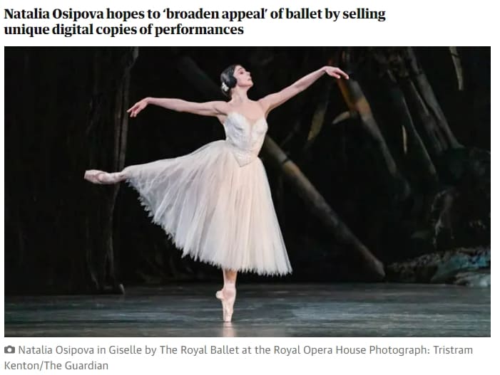 [NFT의 마법] 런던 로열발레단 수석무용수 나탈리아 오시포바, 세계 최초 발레용 NFT 제작 경매 예정 VIDEO: Auction house Bonhams offers non-fungible tokens (NFTs) for three ballet piece