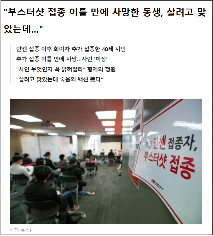 '부스터샷 접종 이틀 만에 사망한 동생, 살려고 맞았는데…'