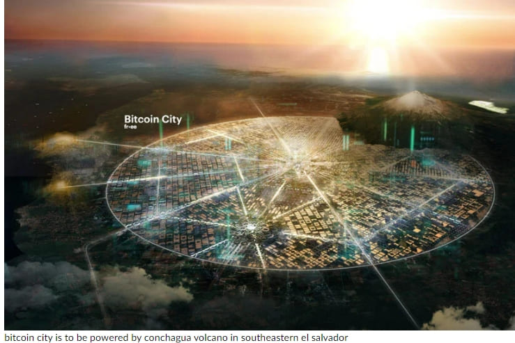 제안된 대도시는 엘살바도르의 콘차과 화산 기지에서 개발될 예정이다. 도시는 동전의 모양과 2012년부터 FR-EE에 의해 이전의 유토피아적 개념으로 완벽한 원으로 계획되었다. 도시의 가장자리에 있는 화산은 그것의 지열 에너지가 암호화폐 채굴을 포함한 전체 비트코인 도시 전력망에 동력을 공급하는 것이기 때문에 그 프로젝트에서 중요한 역할을 한다.