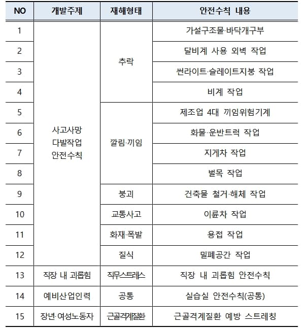 안전보건 포스터 개발 목록(15종)