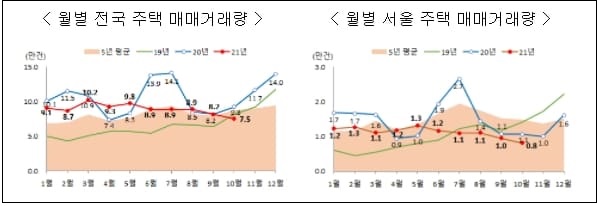 * 연도별 10월 거래량(만건):(’17)6.3→(’18)9.3→(’19)8.2→(’20)9.3→(’21)7.5