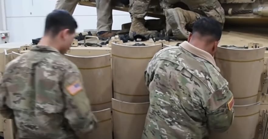 거대한 M1 Abrams 탱크에 고급 반응장갑판 설치