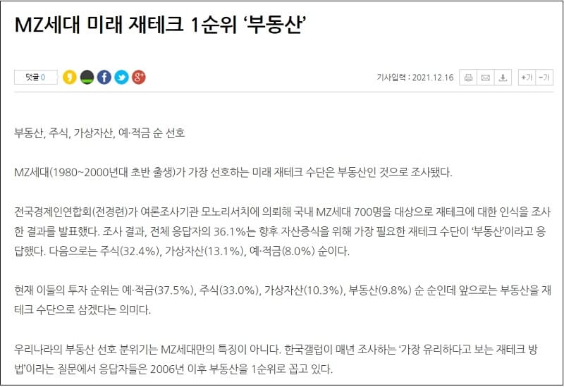 그러나 가장 보편적인 투자법은 우리나라에 국한시켜본다면 부동산이 될 확률이 높다. 물론 부동산에 너무 무리하게 투자하느라 별도의 노후자산을 준비하는 것은 옳지 않지만, 여전히 부동산은 좋은 투자처이기 때문이다. 물론 가장 이상적인 것은 노후준비를 먼저 하고 증권과 부동산을 분산해 투자하는 것이다.
