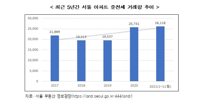 두 번째, 정부 관계자에 따르면 98%의 국민은 종합부동산세와 무관하다고 하지만, 2%의 납세자는 사실상 세대주 기준이고 이에 영향받는 세입자들까지 고려한다면 종합부동산세의 영향을 받는 국민은 훨씬 많을 것이라는 분석이다. 소득은 한정되어 있는데 세금이 증가하면 반전세, 월세 등으로 전환할 수 밖에 없고, 전세 물량이 줄어들면 전세가격 또한 올라가는 만큼 ‘조세 전가’는 분명한 사실이기 때문이다. 늘어난 종합부동산세가 세입자에게 전가된다면 왜곡된 임대차 3법과 함께 임차인의 부담을 늘려 전월세 시장에 연쇄적으로 악영향을 줄 것이라는 분석이다. 또한, 서울 아파트의 최근 준전세주1) 거래량을 보면 2020년 임대차 3법 도입 이후 크게 증가했고, 2022년 8월에 계약갱신청구권이 만료되는 매물이 시장에 풀린다면 주변 시세에 맞춰 반전세로 전환하여 늘어난 세금 부담을 세입자에게 전가할 것으로 예상된다.