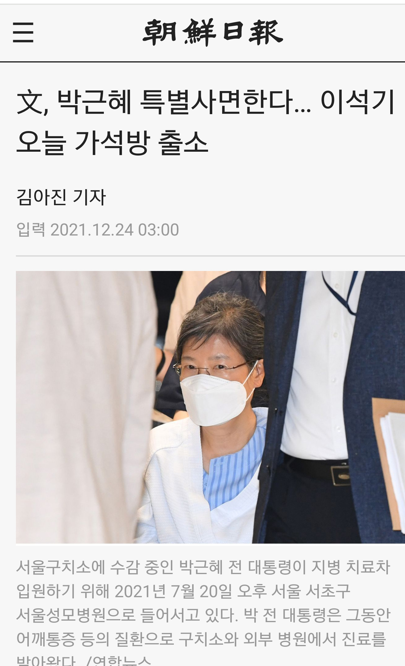 아마 CMC에서 3개과 (내과, 가정의학과, 재활의학과)가 더 이상 수감생활이 어렵고 서거 가능성도 있다고 보고