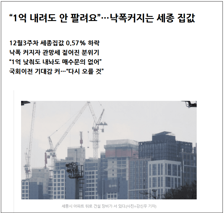 "집값 하락 신호인가?"…세종 아파트값 역대 최대폭 하락