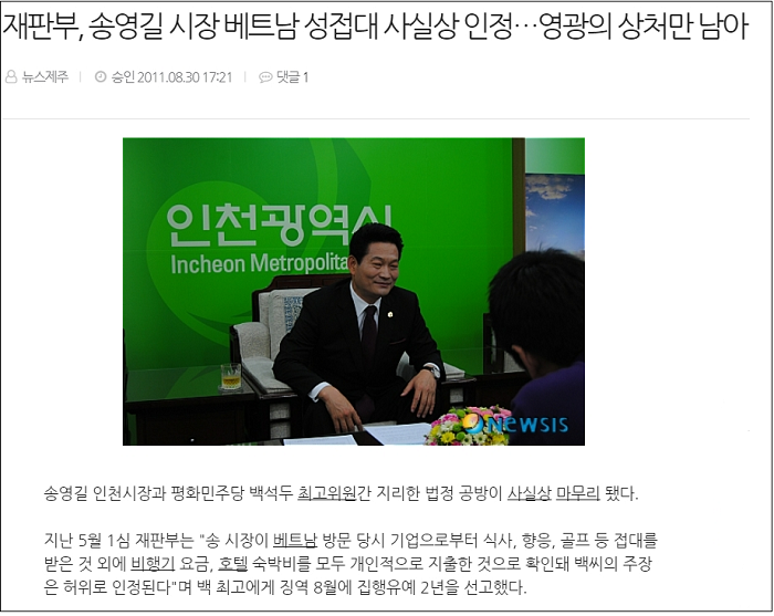 “송, 베트남 17세 미성년자 접대부 매춘, 성 접대 받아”