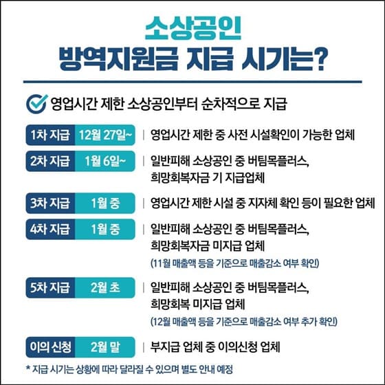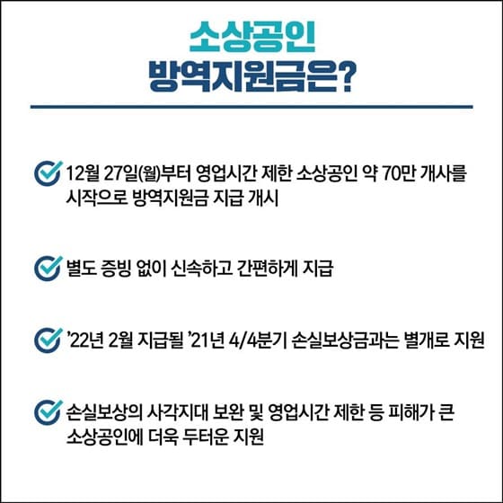 12월 27일(월)부터 영업시간 제한 소상공인 약 70만 개사를 시작으로 방역지원금 지급 개시