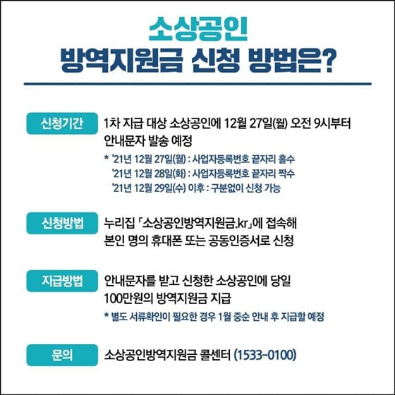 안내문자를 받고 신청한 소상공인에 당일 100만원의 방역지원금 지급